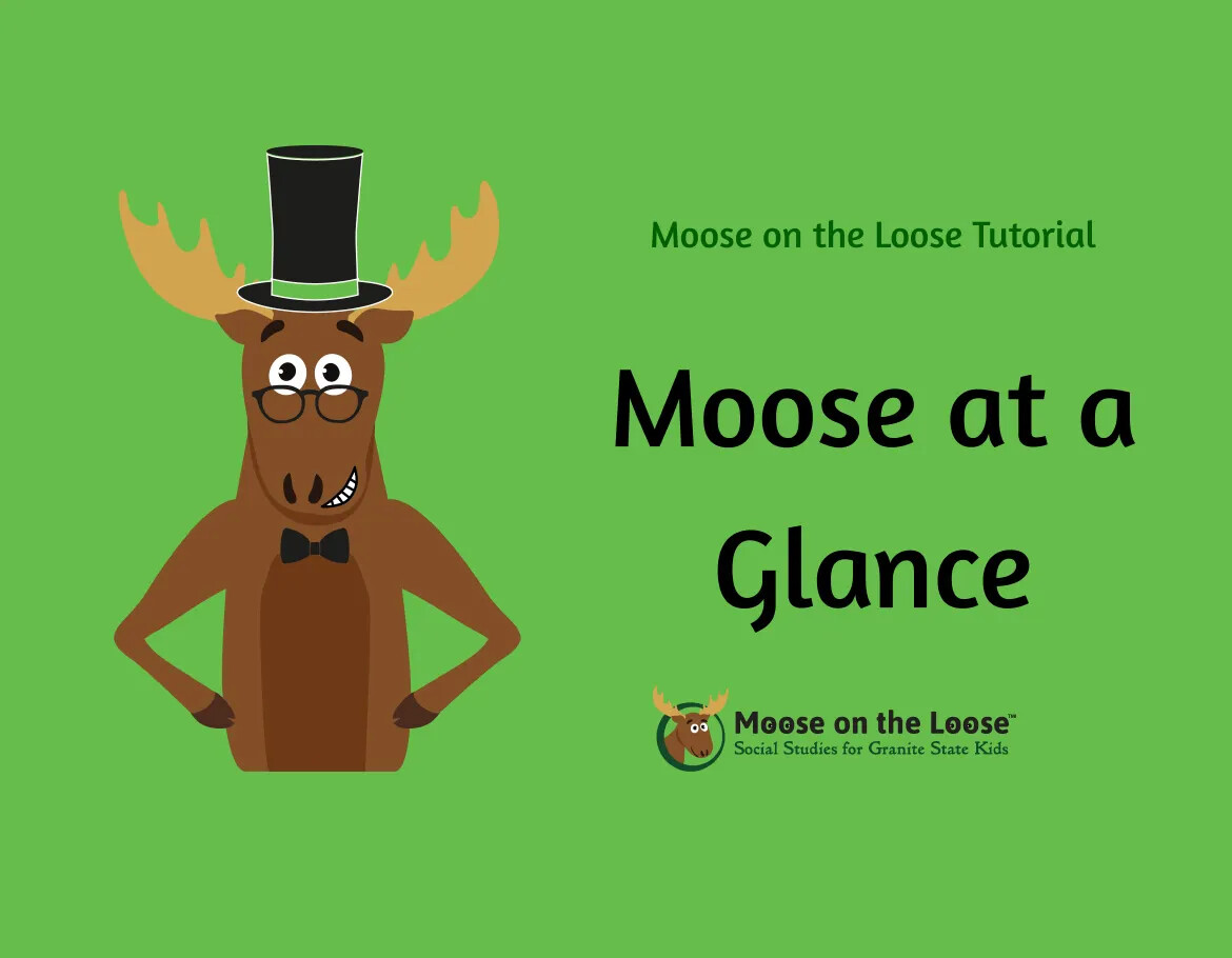 The Moose on the Loose is a BIG site with tons of resources. Use the videos below (and the Moose at a Glance handout) to learn more about why this resource was created, how to navigate through the site, and where to find all sorts of features that make the "Moose" a dynamic social studies adventure for New Hampshire kids.